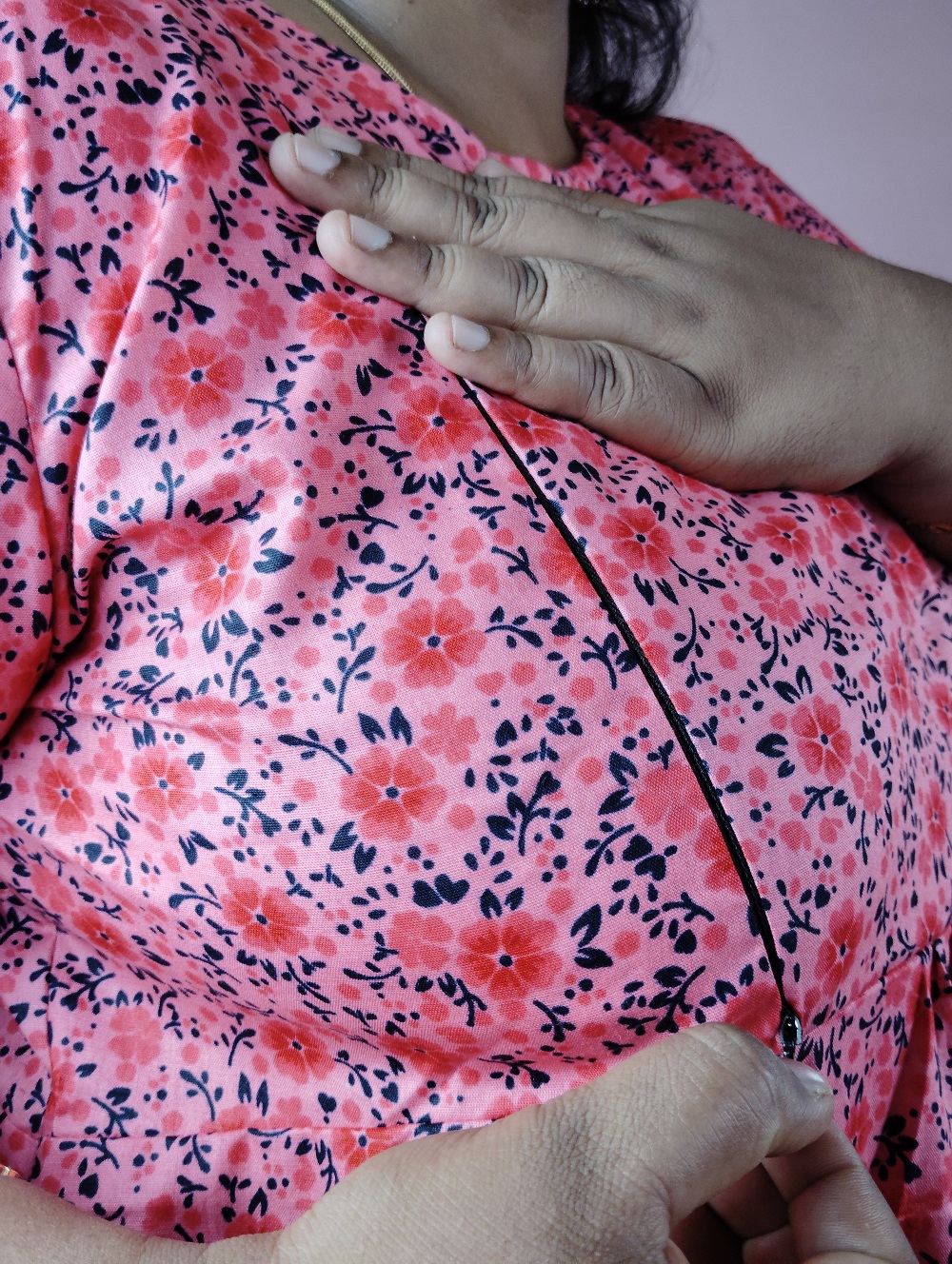 Round Neck, Piping Work,Side open