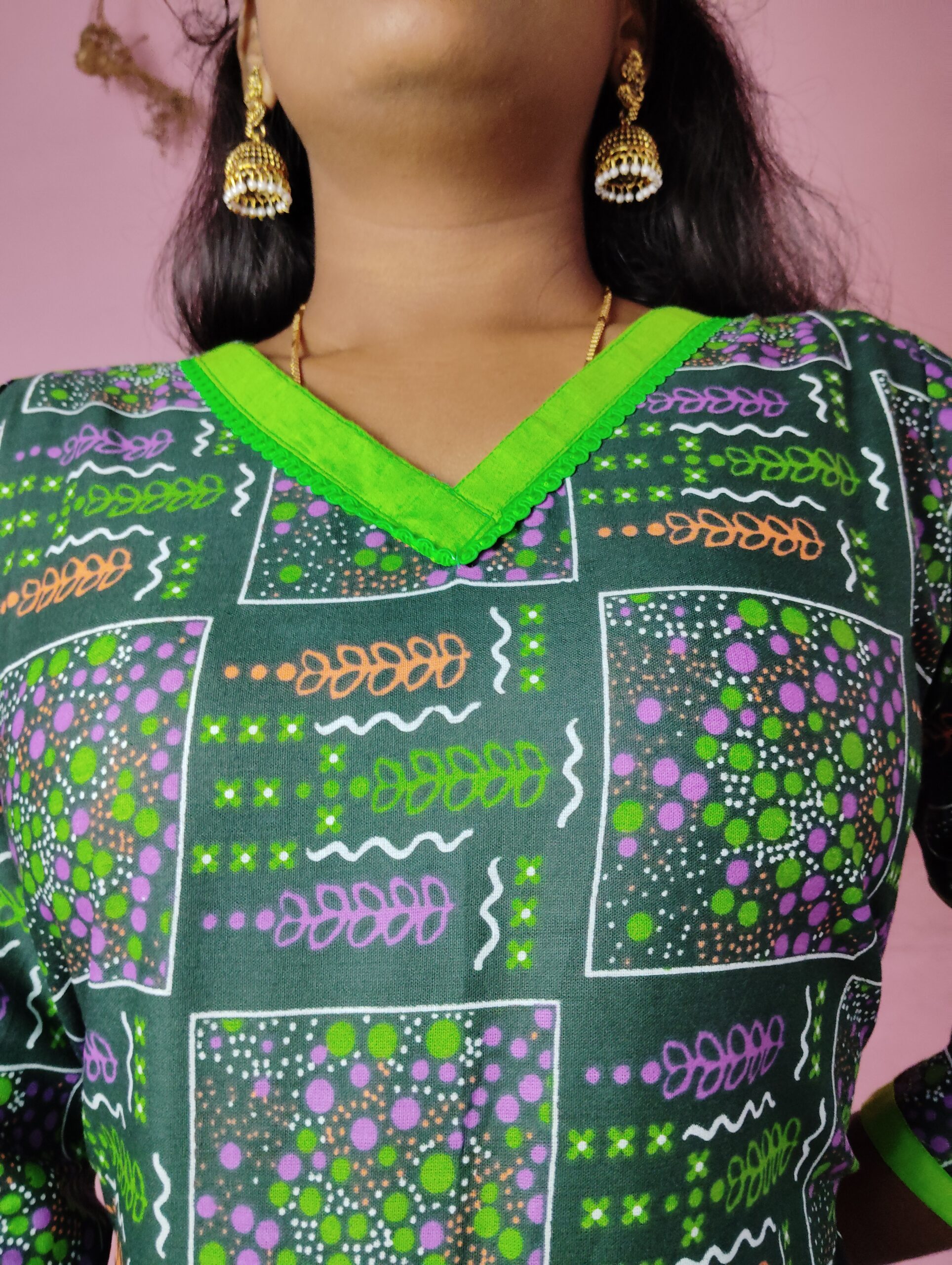 V Neck, Piping / Lace & Patch Work, Side open